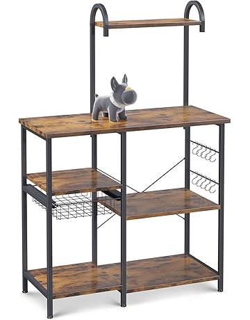 You can find metal bakers racks or racks made from wood, wicker, or wrought iron. And yes, you can place it anywhere you like. Choose kitchen pantry storage to increase food storage or a bakers rack to hold your microwave and display plates, pitchers and other dishes. All the metal is finished in a rich powder coated black which gives the product a distinct look. Multiple shelves design ensures both small kitchen appliances and cooking utensils can be neatly stowed away.